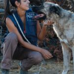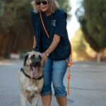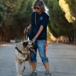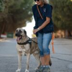 Alerón es más tímido, al principio se asustaba con la correa, parece que nunca antes había salido atado de paseo y que nunca ha vivido en una casa, ya que le daba miedo entrar a dormir en la parte interior de los cheniles.