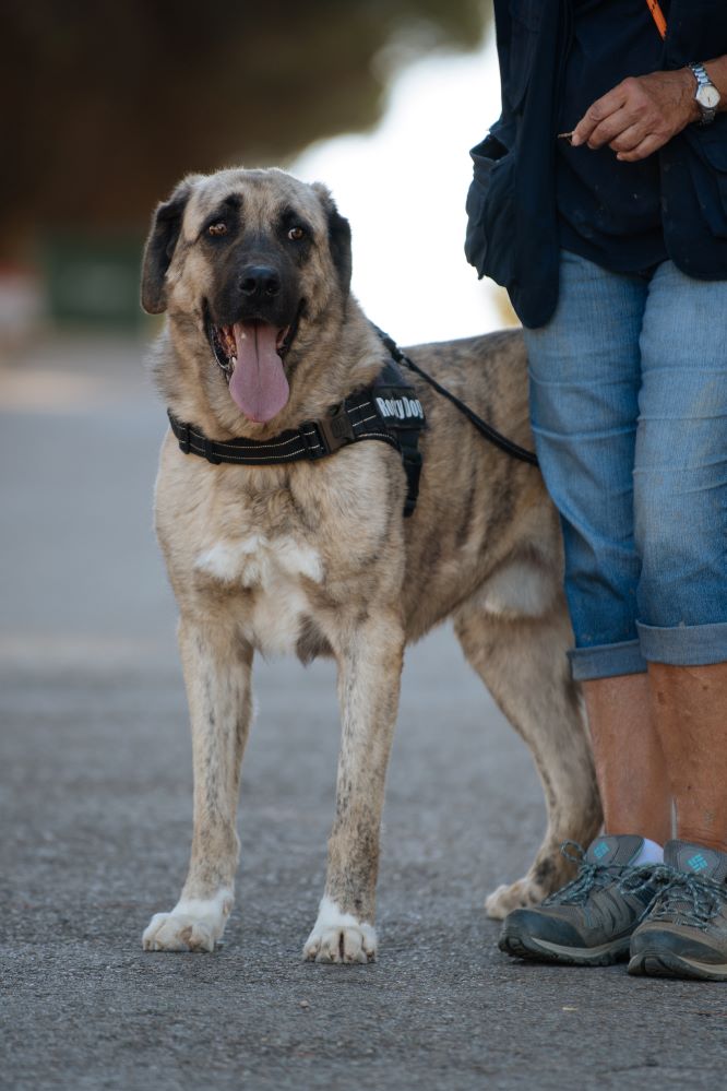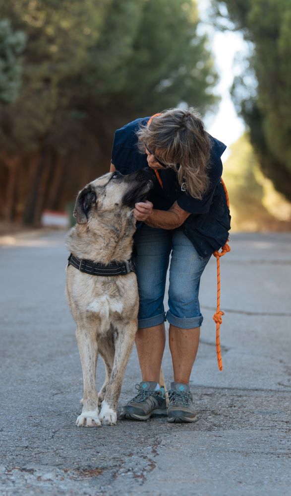 Es un perro bueno, majo, cariñoso y sociable, muy agradecido en cuanto le prestas algo de atención.  En los patios siempre está pendiente de nosotros, deseando recibir alguna caricia.  Un grandullón con mucho amor que dar!
