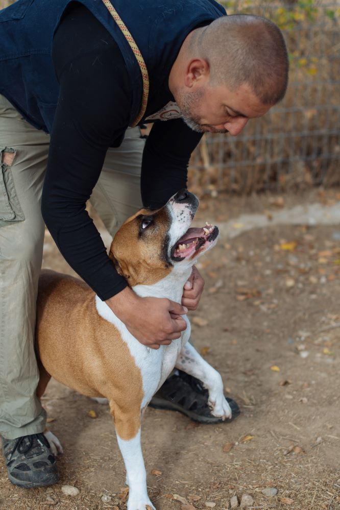 Cuando lo sacamos de paseo es el perro más feliz del mundo, va moviendo el rabito orgulloso de que estés a su lado. Si lo soltamos en los patios no se separa de nosotros, ¿para qué correr por ahí si lo que quiere lo tiene cerca?