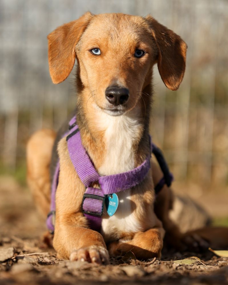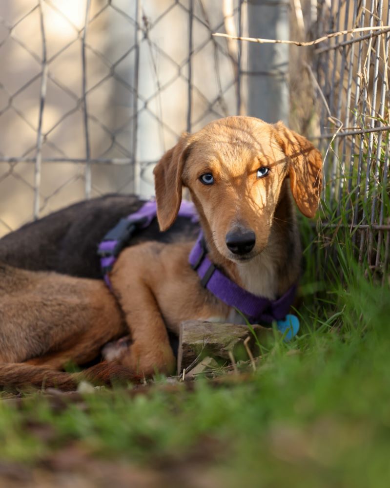 Bluey es una de las que más estaba tardando en confiar, pero con mimos y dejándole su espacio ya va aceptando las caricias. Buscamos familias comprensivas y pacientes que entiendan por lo que han pasado estos perros; no conocen nada del mundo exterior y hay que enseñárselo poco a poco.
