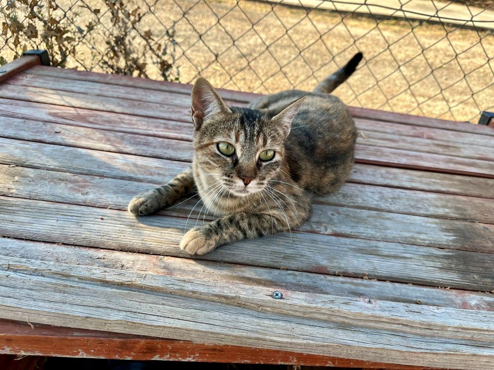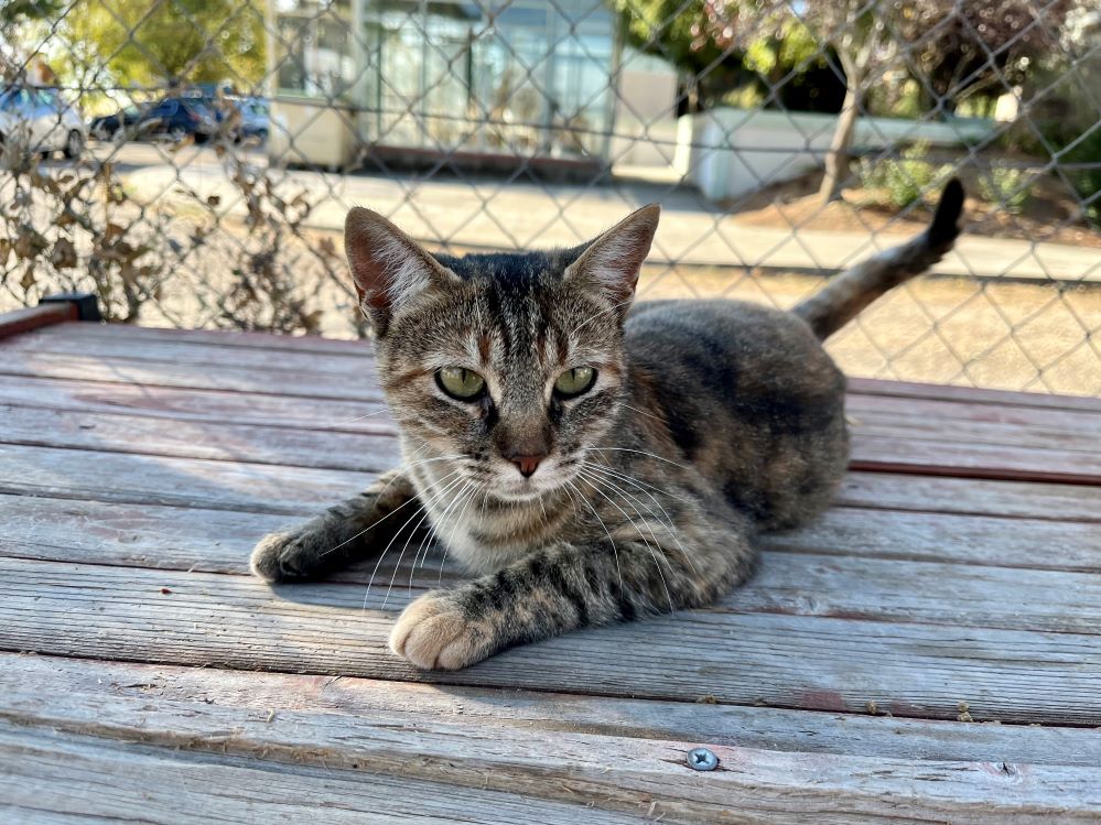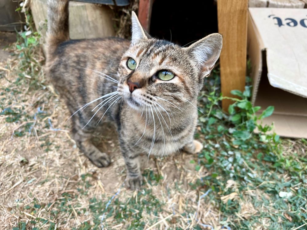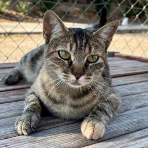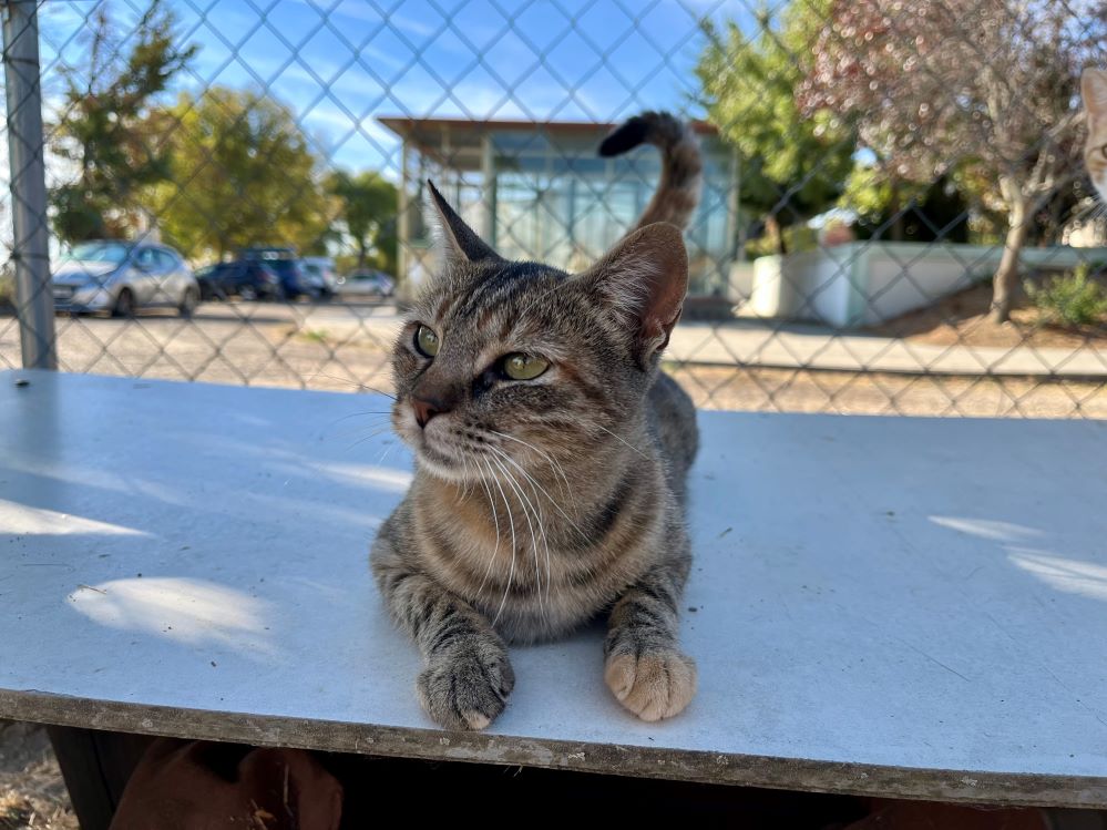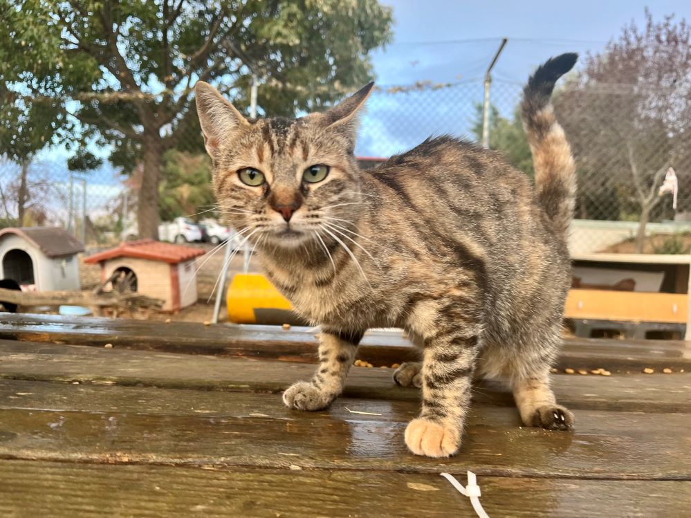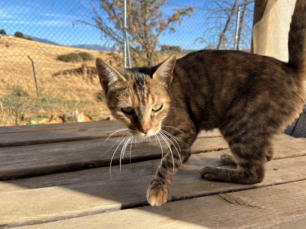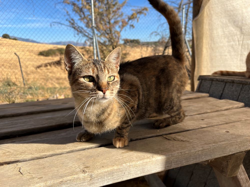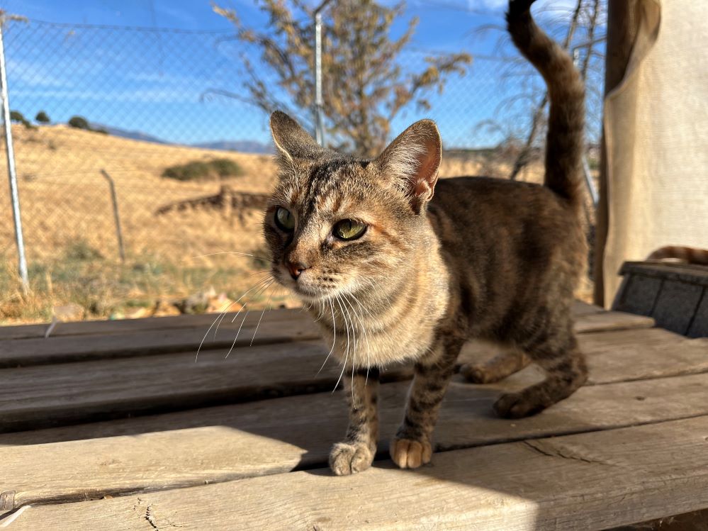 Historial de adopción:   Esta gata es muy sociable y extrovertida.   Se lleva bien con sus compañeros de gatera y juega con todos los que puede y, si no, se entretiene ella sola!   Cuando entramos a verla viene de las primeras a pedirnos algún premio.