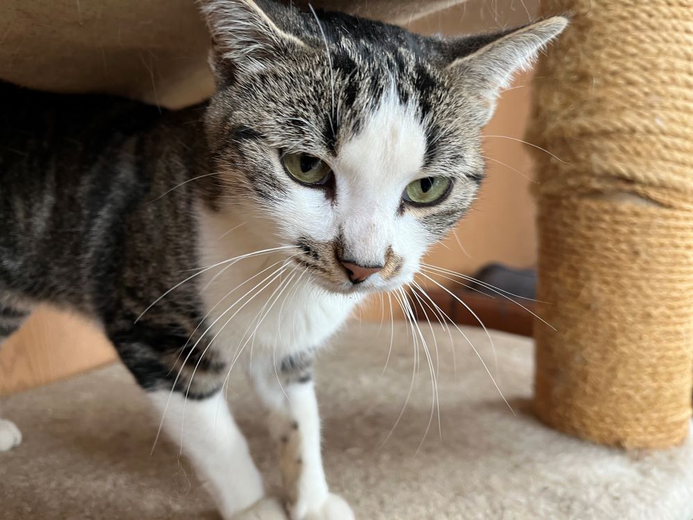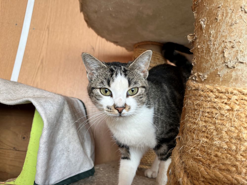 Historial de adopción:   Esta gatita es muy rica, te sigue a todas partes buscando mimos y caricias; va haciendo ruiditos para llamar tu atención.