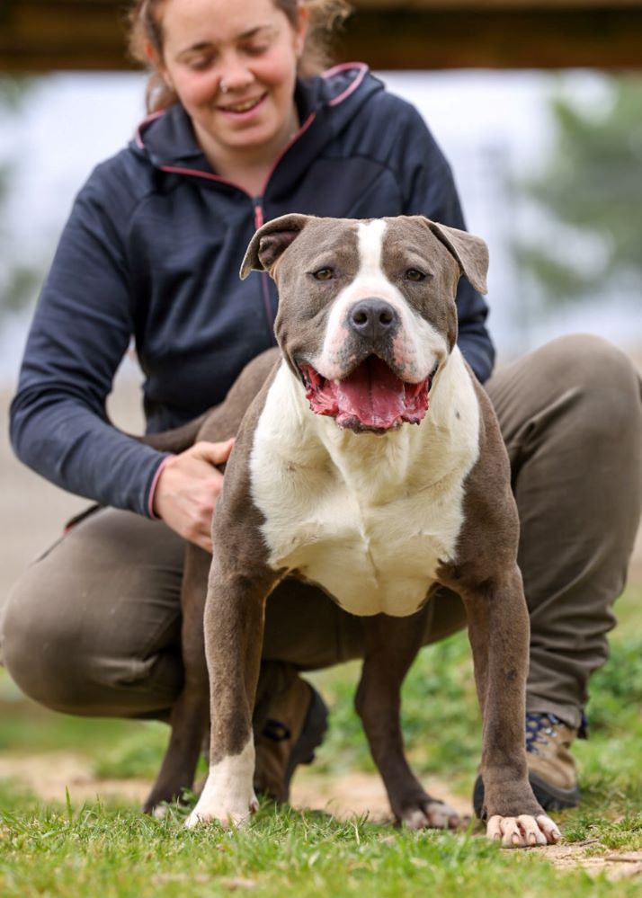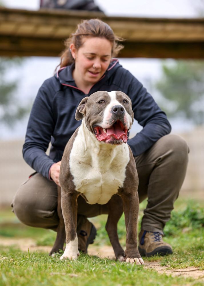 Estas razas tienen mucha fuerza, son tan intensos para todo que eso mismo es lo que nos hace quererlos. Jaimito es joven, enérgico y su futuro adoptante tiene que estimularlo mentalmente. Hay que buscar juegos que lo entretengan y relajen para reducir el estrés. Es un perro muy cariñoso que busca continuamente compañía, está pendiente de dónde estamos; aunque esté olisqueando algo a unos metros, de reojo mira para no perdernos de vista. Buscamos adoptantes responsables que sepan ver más allá de una raza o un físico y sepan apreciar y valorar el gran perro que es.
