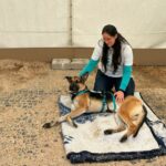 Le encanta que lo saquemos a correr en los patios, allí cambia totalmente y lo vemos feliz.   Disfruta paseando con nosotros y olisqueando el entorno.
