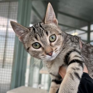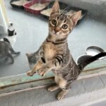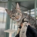 Mairi es riquísima, se te sube por la pierna en cuanto te descuidas para que le hagas caso. Tiene una malformación de nacimiento en el esternón llamada Pectus carinatum. En principio no le impide hacer vida normal pero hay que esperar a que finalice su desarrollo para ver como evoluciona. La familia que la adopte tiene que ser consciente de que tendrá que estar un poco más pendiente de ella. Ahora corre, salta y juega por la gatera como una locuela. Es una gata súper sociable, cariñosa y ronroneadora.