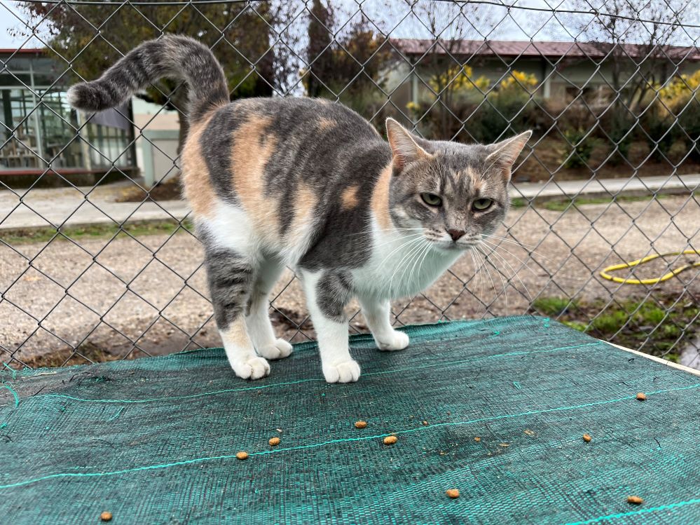 | Historial de adopción: Aunque Navica es muy sociable y cariñosa con la gente, vemos que no está feliz aquí. Siempre está buscando un hueco para poder escaparse de la gatera, y eso que no se lleva mal con los demás gatos.