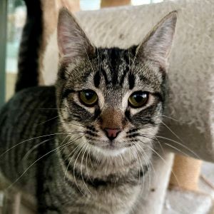 | Historial de adopción: Este gatito es muy rico y amistoso; se lleva bien con el resto de compañeros de gatera.