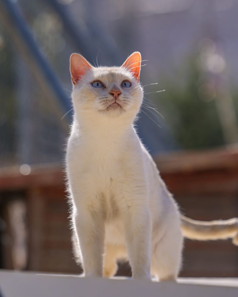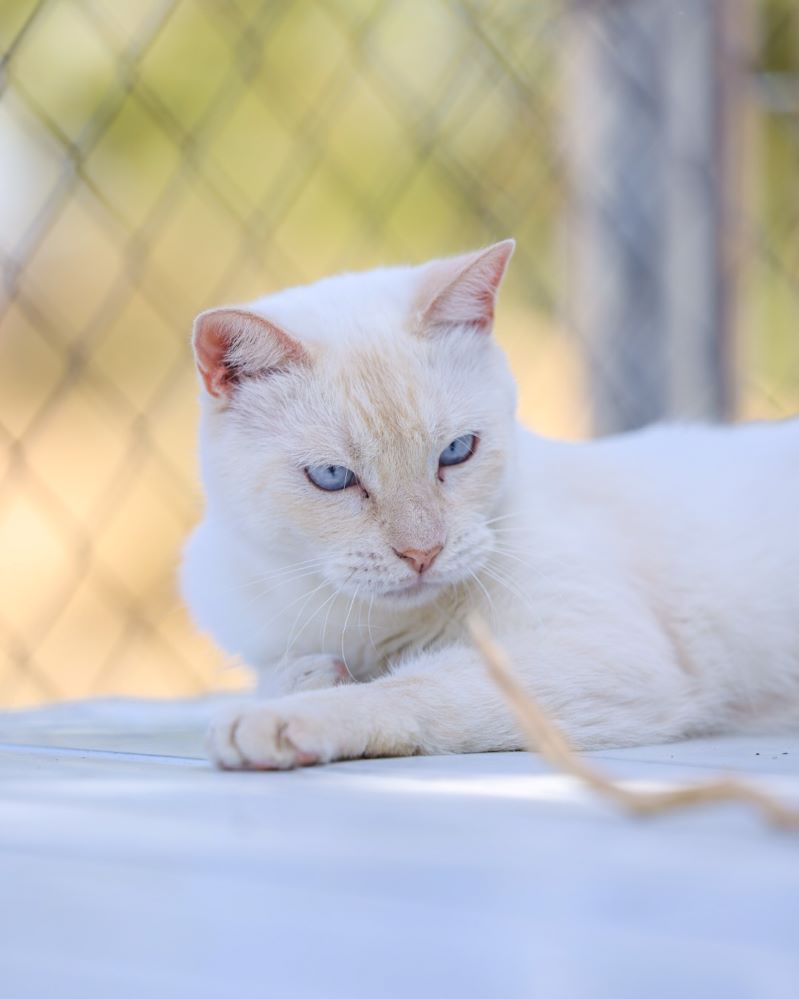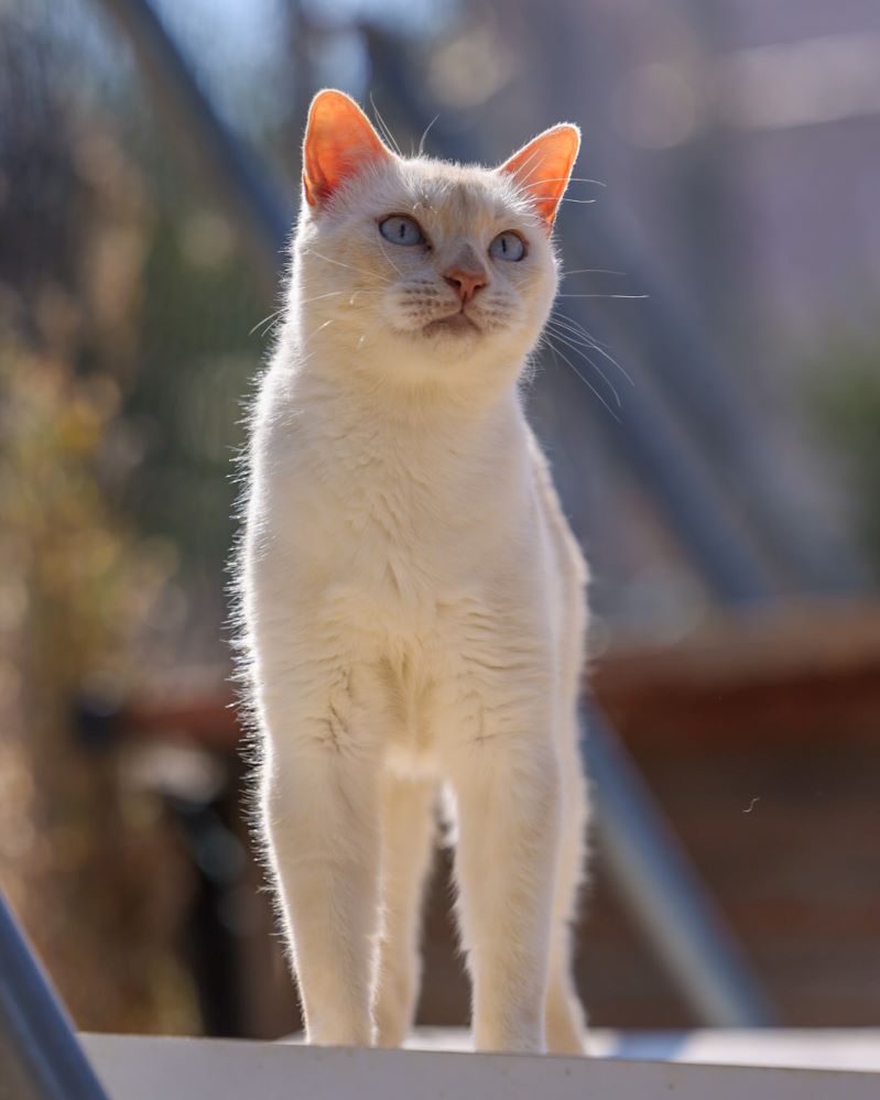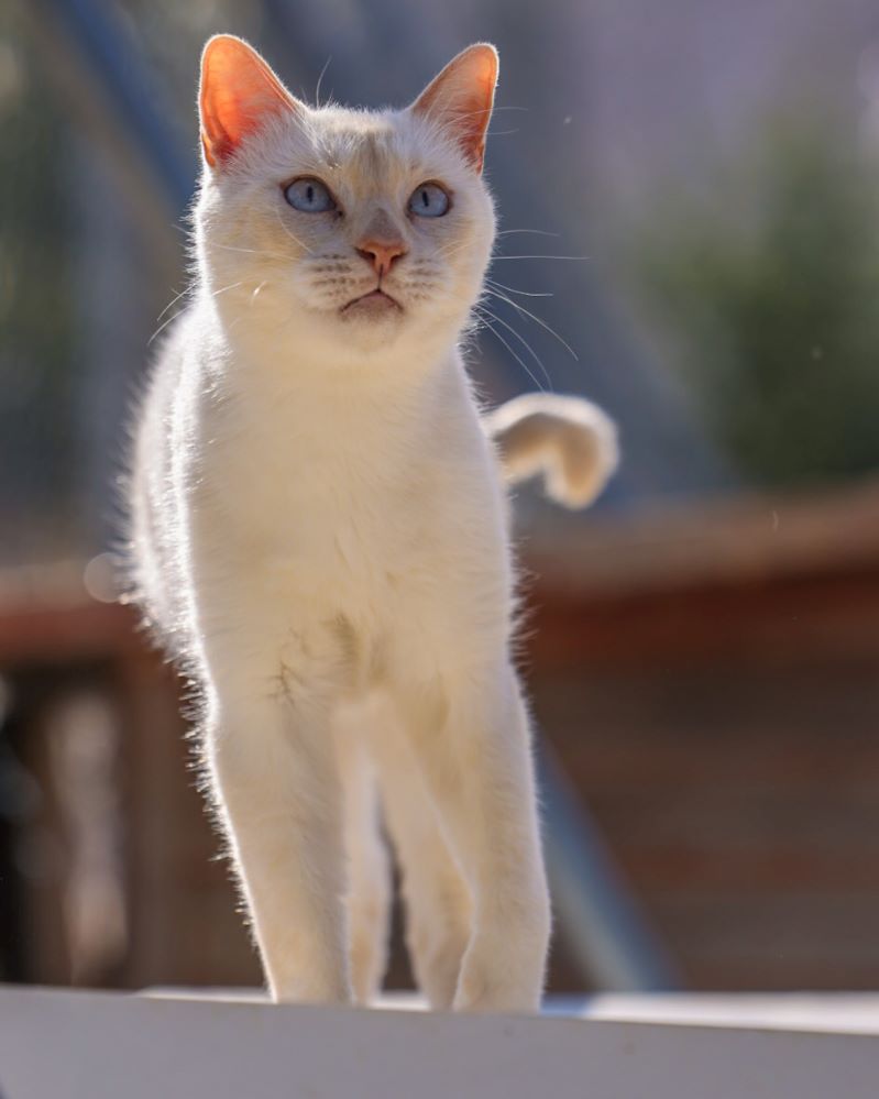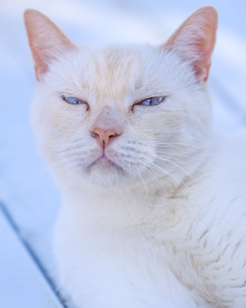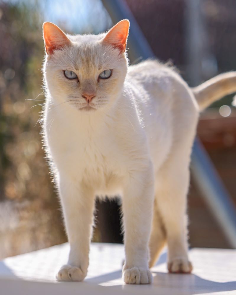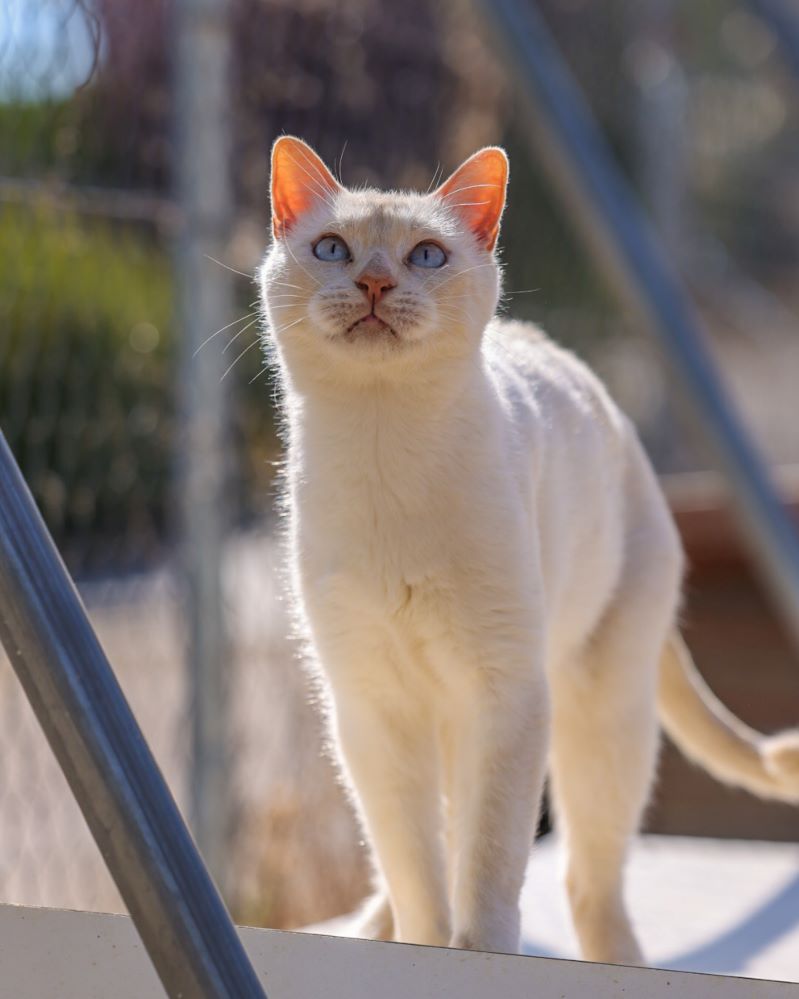 Historial de adopción: Oriol es un señor gato muy cariñoso con la gente y con unos ojazos azules preciosos. (El día que hicimos las fotos había mucho sol y no abría demasiado los ojos) por eso queremos que esté pronto en una casita para que no le dañe tanto la luz.