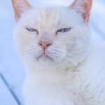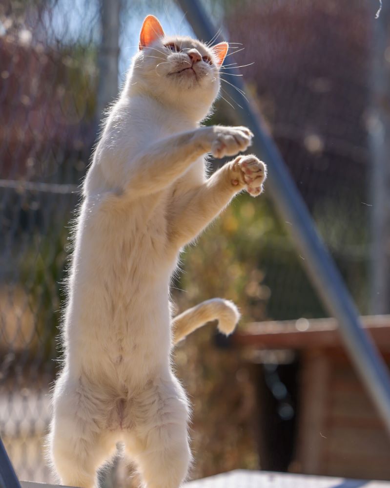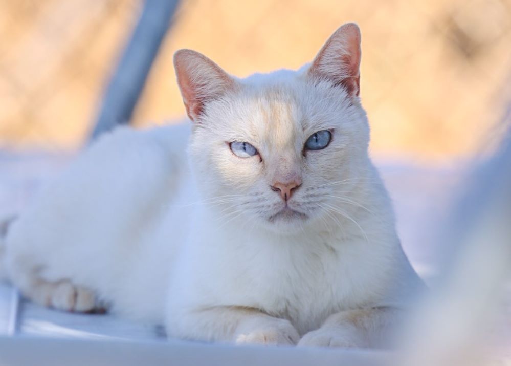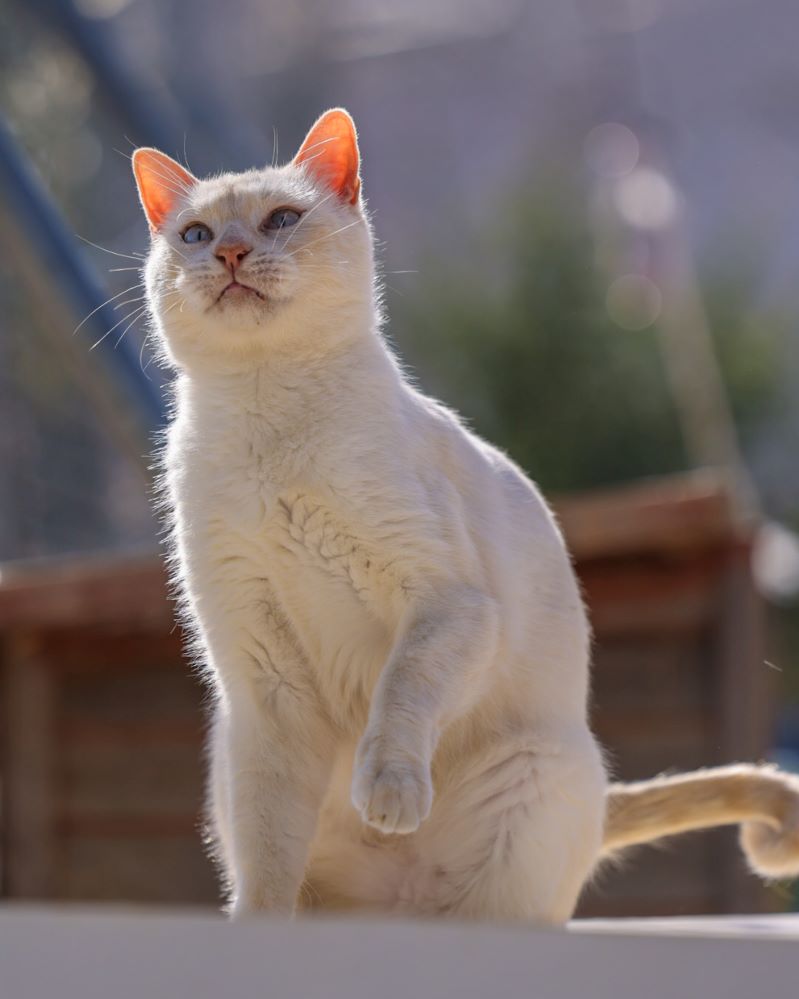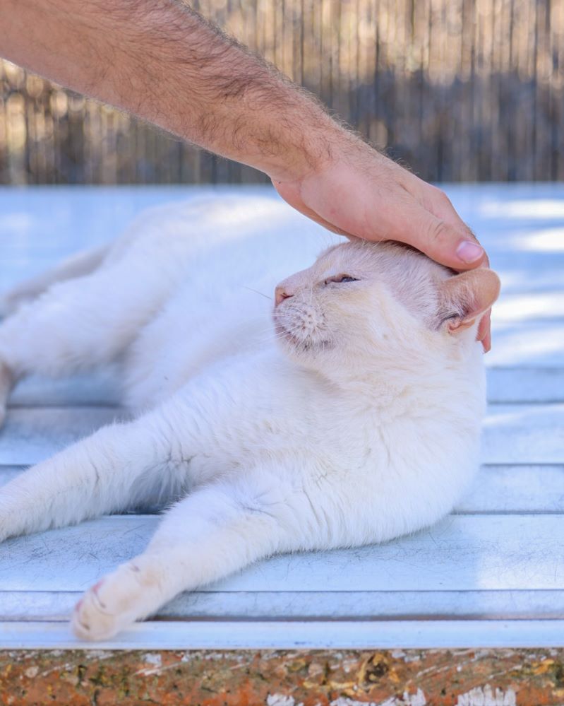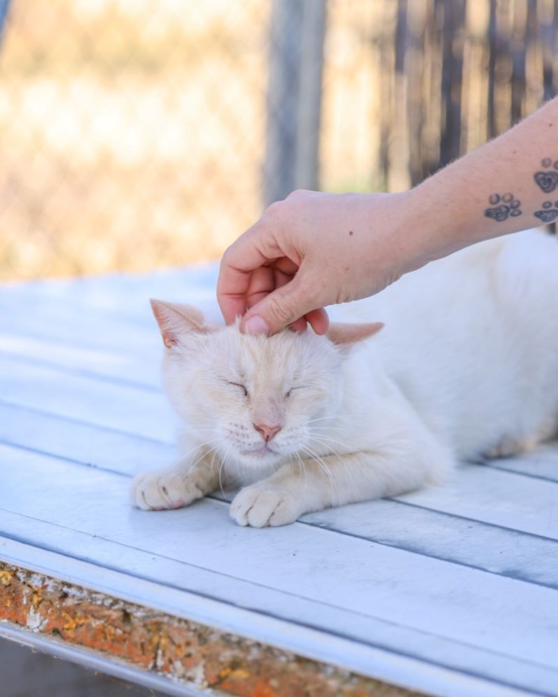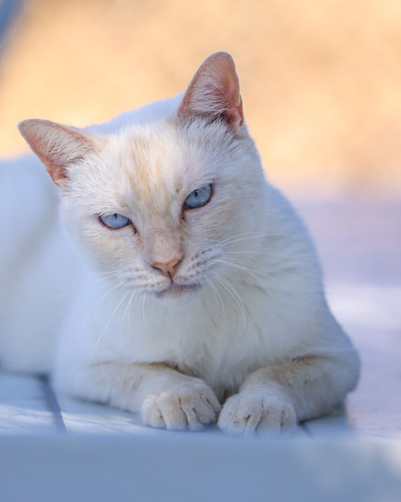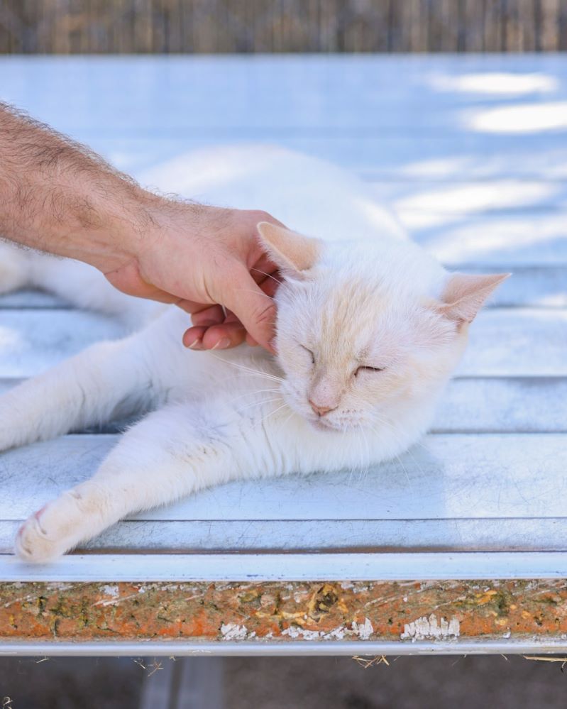 Historial de adopción: Oriol es un señor gato muy cariñoso con la gente y con unos ojazos azules preciosos. (El día que hicimos las fotos había mucho sol y no abría demasiado los ojos) por eso queremos que esté pronto en una casita para que no le dañe tanto la luz.